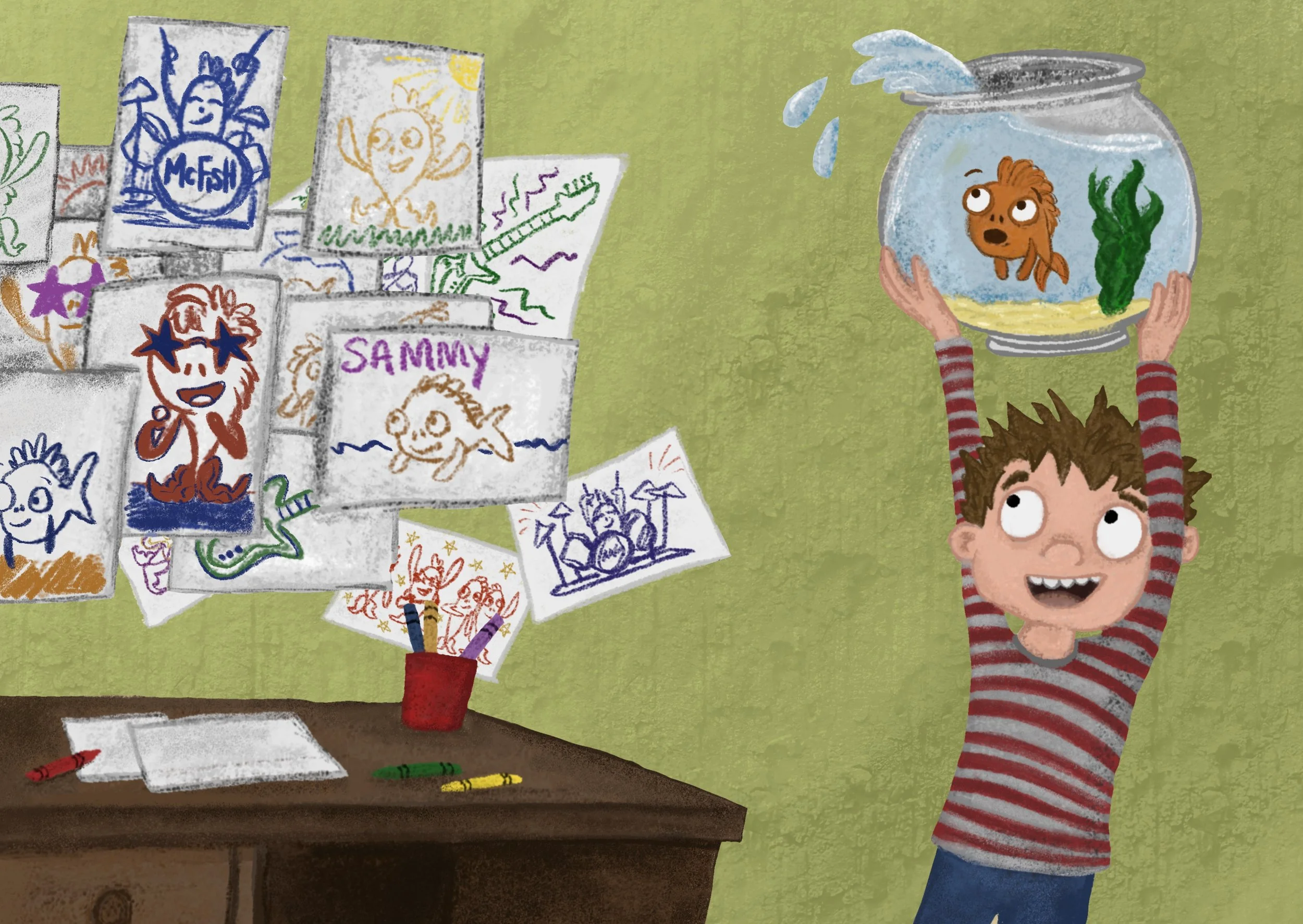 My Goldfish is a rockstar is a picture book about a boy who’s goldfish keeps mysteriously disappearing. His mum tells him all about how his fish has a secret life as a rockstar. This book uses humour to disguise what has really happened to his goldfish.
